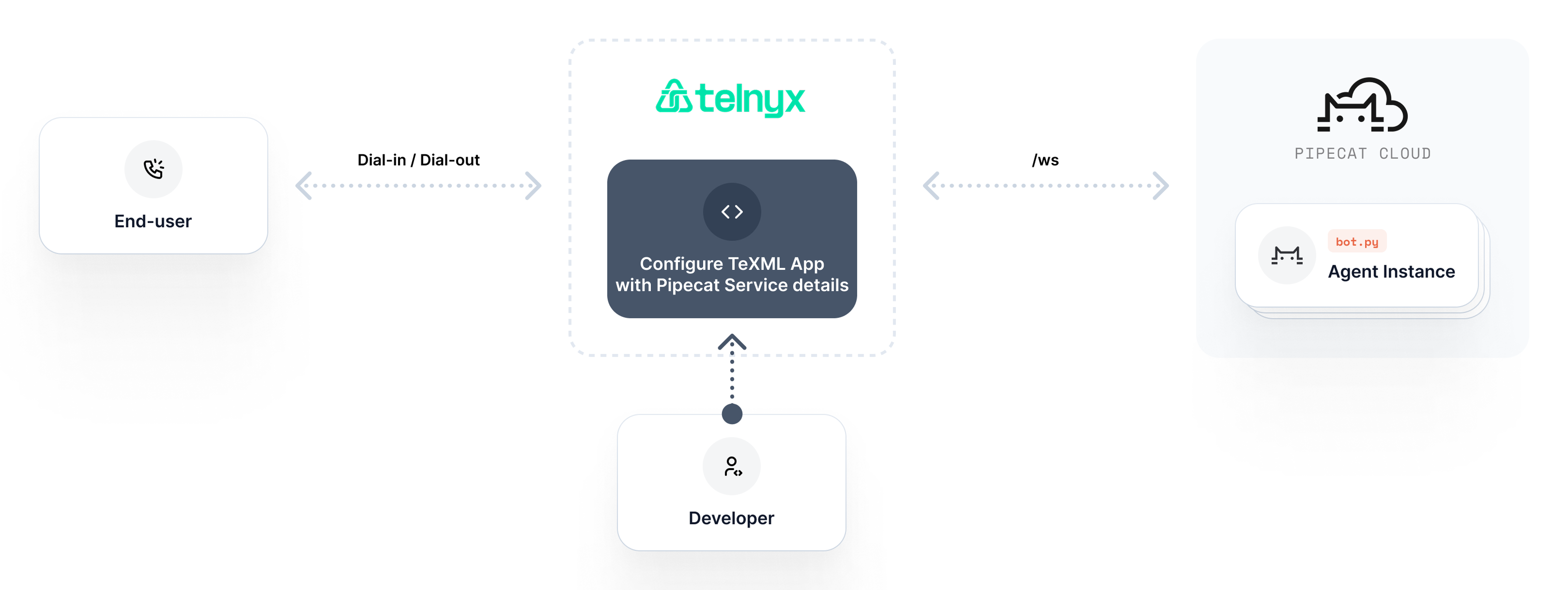 - A Pipecat Cloud account with a Telnyx WebSocket-compatible bot